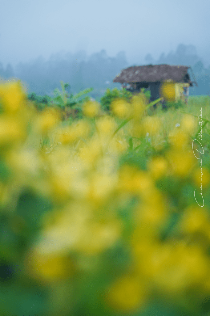 We started with very foggy view thus could not see the mountain, but slowly the wind blew and the fog disappeared. Some playful colors from spot 1: